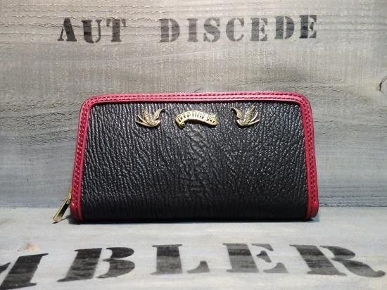ラウンドジップウォレット/シャークスキン(サメ革)/リボン・ツバメ