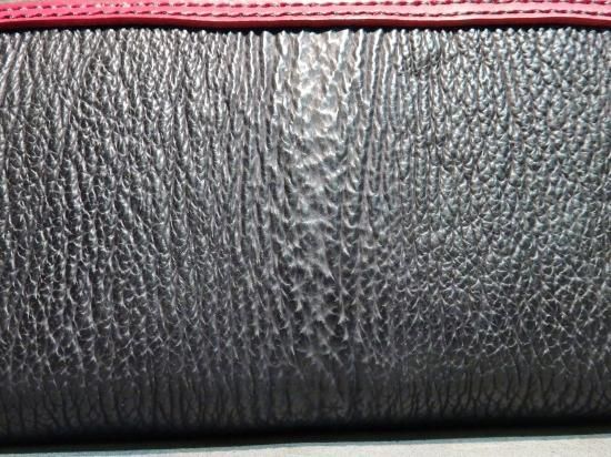周りに縁は、サドルレザーを赤で手染めしておりますので、それぞれ違う経年変化を楽しめるます。