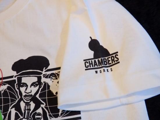 左腕プリント CHAMBERS WORKSとシンプルなプリント。