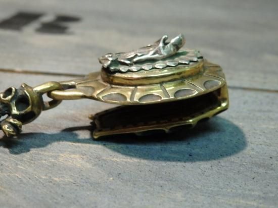 キーパーの上にマリアをセットし、20個のスカル/クロスボーンをロウ付けで繋げ、途中にトライバルが掘り込まれたスカルをセットしました。そこに、燻しを入れ、より深みがあり、インパクトがある仕上になっています。