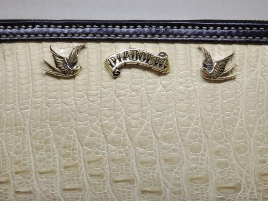 背中に持つ凹凸、こぶの様な模様が特徴で鱗も不揃いで他にはない革を最大限に使用し、リボンとツバメのカスタムパーツをセット。