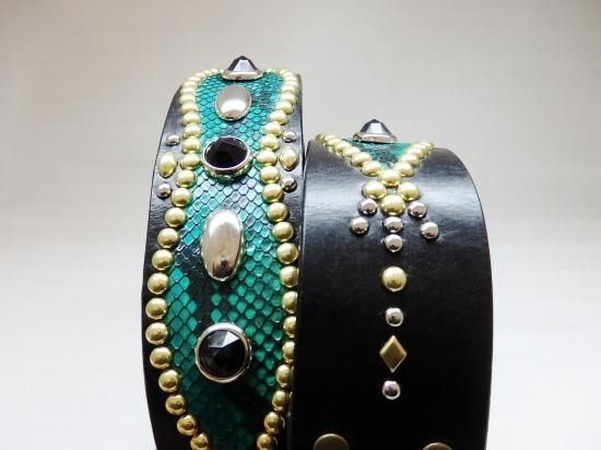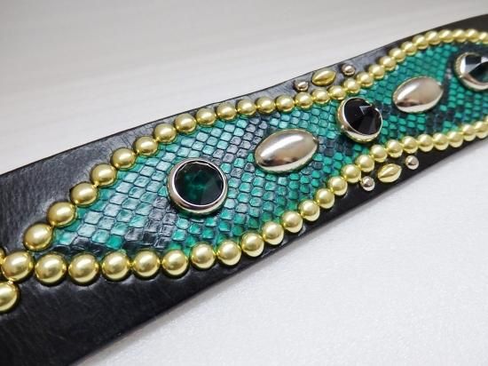 ダイヤモンドパイソンを使用しましたスタッズベルトのオーダーを頂きました。