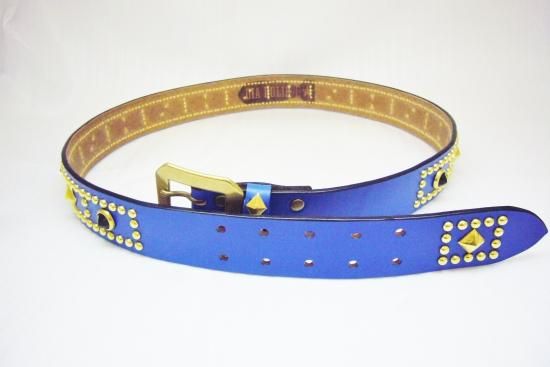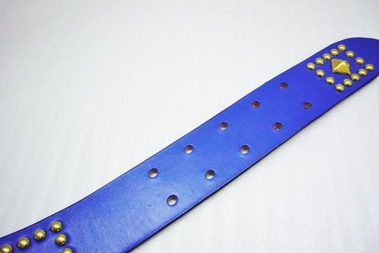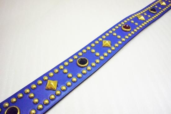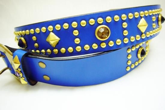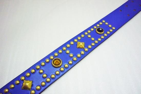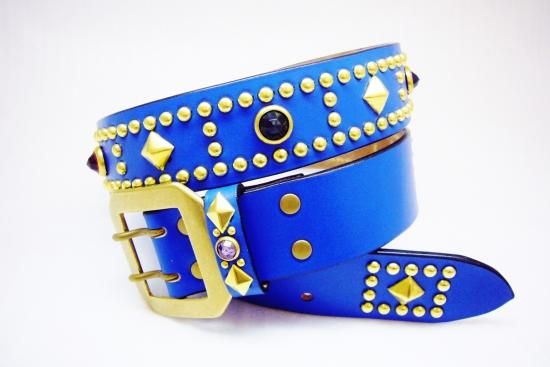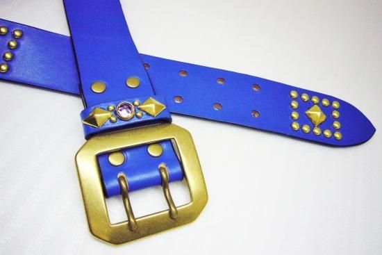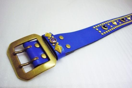 BR-B40-004をベースに青のUKサドルレザーを使用しましたスタッズベルトのオーダーを頂きました。