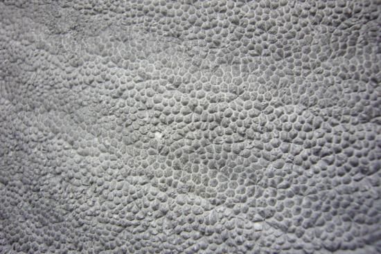ゾウ革は厚く丈夫で特有の大きなヒダ、シワがあり、細かい粒状に隆起が特徴です。耐久性に優れ、使うほどに独特の味わいが深まる素材で、さらにポイントとしてスタッズを打ち、内側はシンプルにし、サドルレザーとゾウ革の素材全ての良さが現れ、綺麗で高級なカードケースに完成しました。