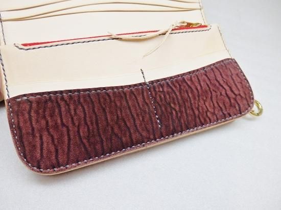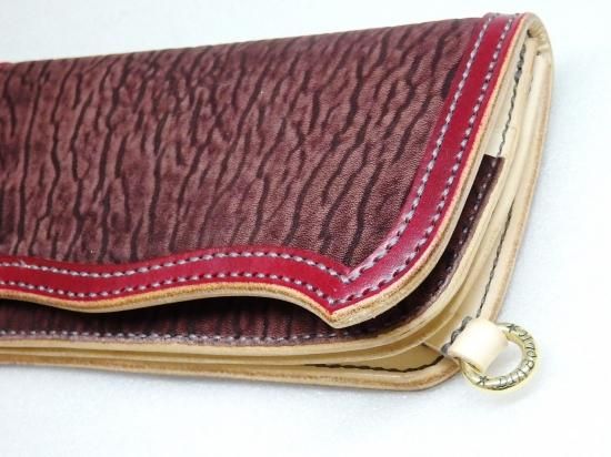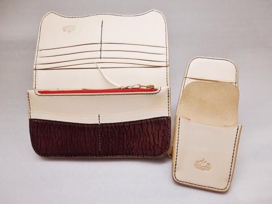 表側と内側の変わり行く変化がそれぞれ違い、オーダーならではに組み合わせで使い込む程に変わって行く変化も楽しみなウォレットに完成しました。