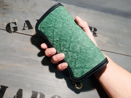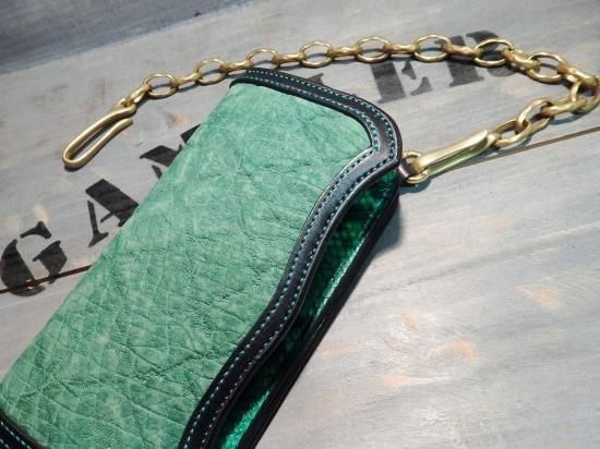 ヒポレザー(カバ革)・GREEN/サドルレザーウォレット/ダイヤモンドパイソン(ヘビ革)