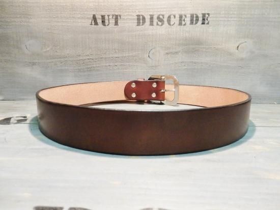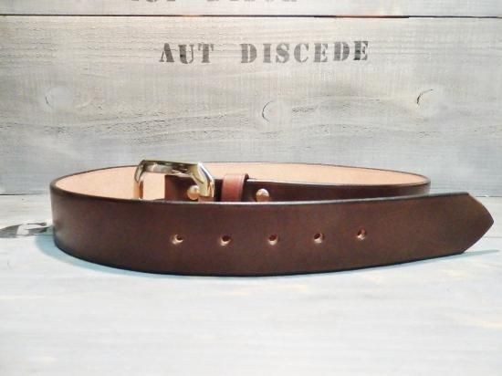 装飾なしで革本来の良さが良く出ており、さらに使い込む程に艶が増して行くベルトに完成しました。