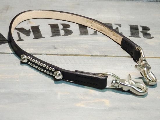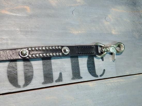 UKサドルレザー/ウォレットコード/スタッズ/シルバーパーツ