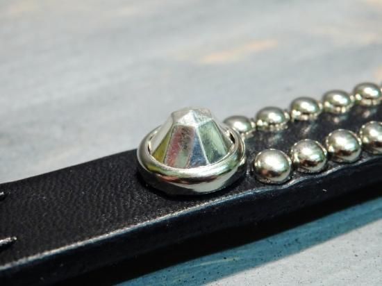 貴重なUKサドルレザーに通常はスタッズをセットですが、シルバーのカスタムパーツをセット。