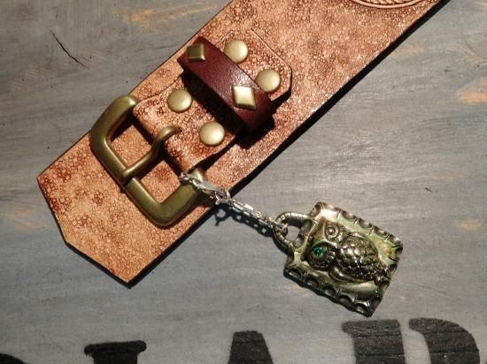 通常販売しているトップには石を入れておりません。お客様のご希望で緑のアルピナイト グリーンをセットしました。又、ブレスレットのバックルからぶら下げて使用するとの事で、シルバーのチェーンもセットしました。