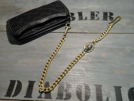 使い込んだ革に、真鍮のチェーン。存在感のある真鍮チェーンはDIABOLICのアイテムと