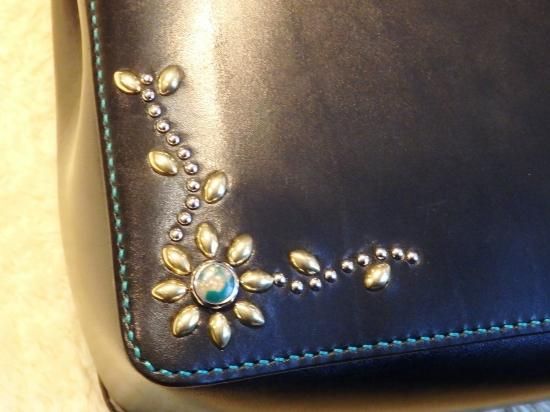 ■商品名:昭南サドルレザー/ナチュラル/スタッズ・フラワー/タイガーアイ/トートバッグ・オーダー品