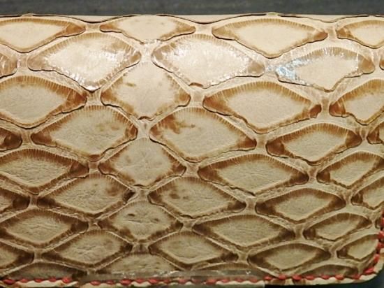 美しく均整の取れた、鱗のひし形が特徴で、絶滅危惧種に分類されており、極めて入手困難な革を使用し、内側のカード段は使用し易くシンプルですが、裏貼りにハラコ革を使用。全てがオーダーならではの贅沢さで、使用して行く程に変わる経年変化が楽しみなカードケースに完成しました。