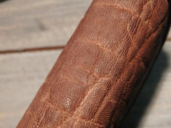 ゾウ革は厚く丈夫で特有の大きなヒダ、シワがあり、細かい粒状に隆起が特徴で、カードと小銭を入れ、エクセラジップがより高級感を出し、開閉は本当にスムーズで使用し易さ、使い勝手も良く、オリジナルのカスタムパーツをセットし、素材全ての良さが現れたラウンドジップコインケースに完成しました。