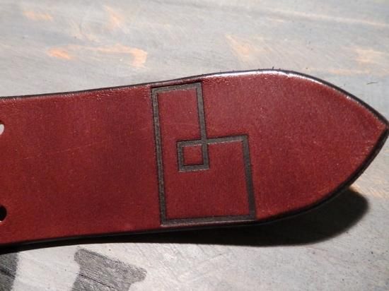 昭南サドルレザーを使用し、バースランドとマークを焼印。完成後にさらにご要望で剣先にスタッズをセット。