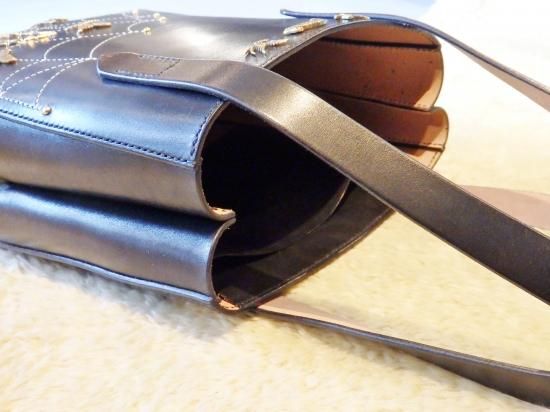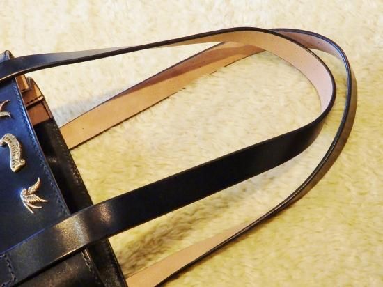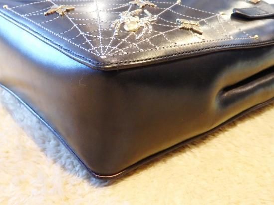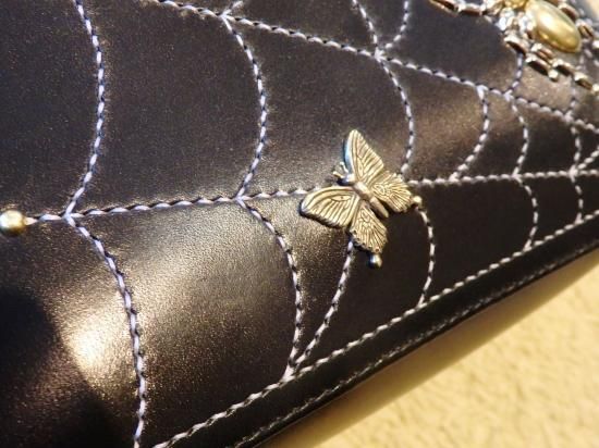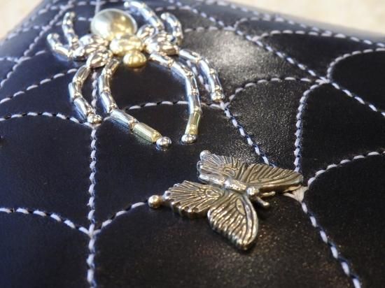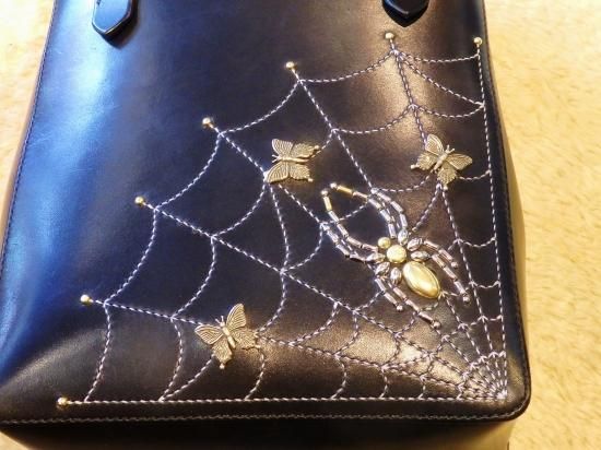 昭南サドルレザーを使用しましたトートバッグに、スパイダー・スパイダーウェブ、リボン、ツバメのカスタムパーツに新たにバタフライを製作し使用したオーダーをビル ウォール レザー上野店から頂きました。