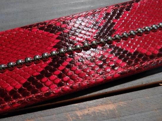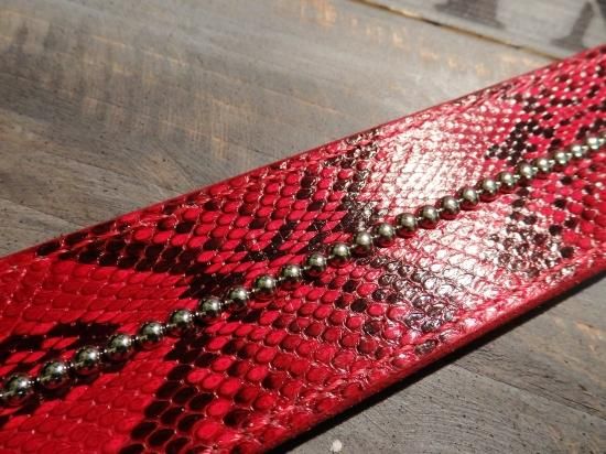 美しい柄が特徴のダイヤモンドパイソンを使用し、裏面はUKサドルレザー、サイドに赤のステッチを入れ、とても頑丈な作りで、お客様のご要望でBR-B45-003のスパイダーをセット。オーダならではの組み合わせで、経年変化を楽しみながら長く愛用頂けるベルトに完成致しました。