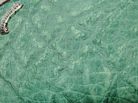 カバの革の表面はヌバック・スエード状で、網目状の深いしわが見られ、模様が深く入っている部位とそうでない部位があり、それが濃淡のある表情で、さらにシルバーのリボンのカスタムパーツをセット。