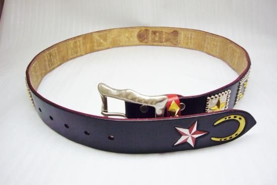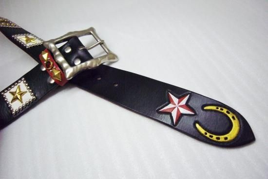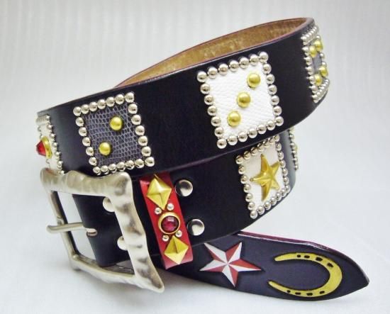 UKサドルレザー/カービング/ダイス/スタッズベルト