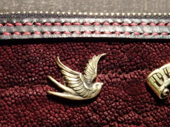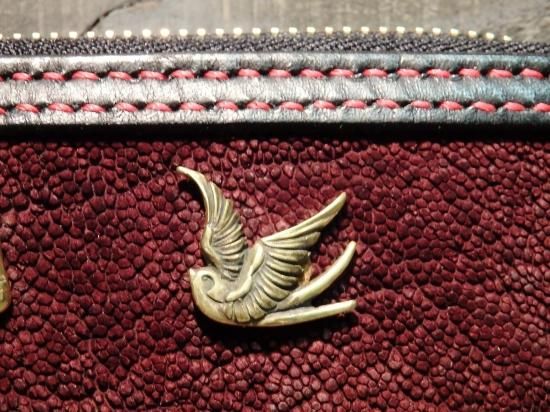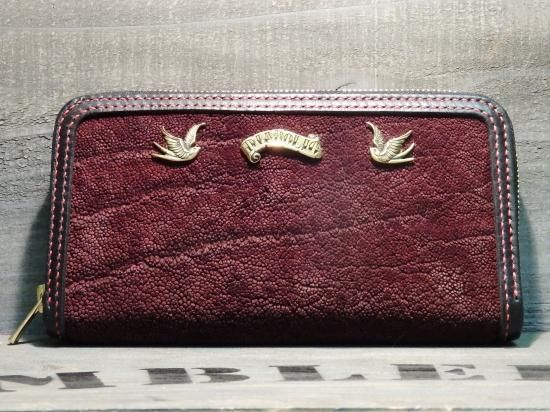 エレファントレザー・ワイン/リボン・ツバメBRASS/ラウンドジップウォレット