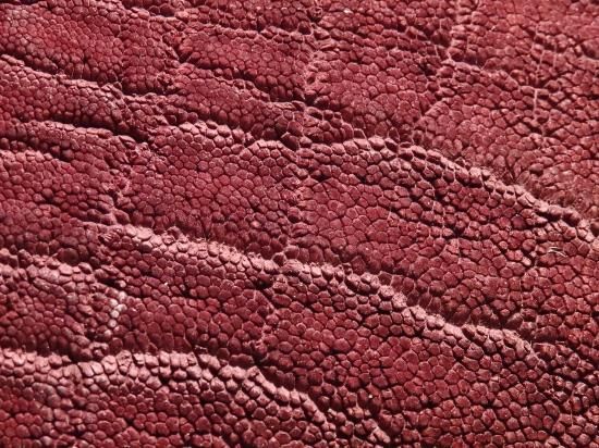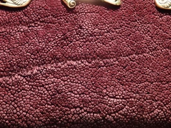 ゾウ革は厚く丈夫で特有の大きなヒダ、シワがあり、細かい粒状に隆起が特徴です。耐久性に優れ、使うほどに独特の味わいが深まる素材です。