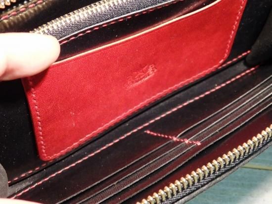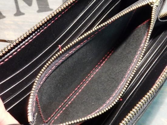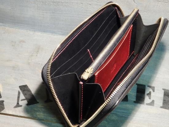 収納スペースを多く設け、カードやお札、レシート等を選別して収納出来、使用し易さ、使い勝手も良く、素材全ての良さが現れ、オーダーならではの内側の構造のラウンドジップウォレットに完成しました。