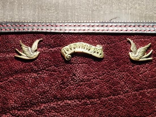 ■商品名:エレファントレザー・ワイン/リボン・ツバメBRASS/ラウンドジップウォレット/オーダー品