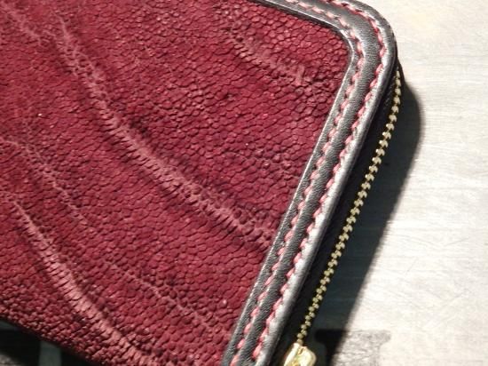 ワシントン条約で輸入制限をされている貴重な革のエレファント。贅沢な革を最大限に贅沢に使用しましたラウンドジップウォレットのオーダーを頂きました。