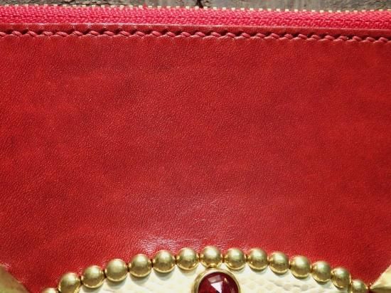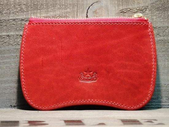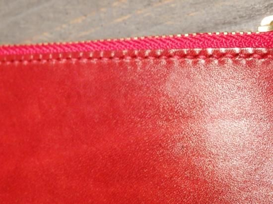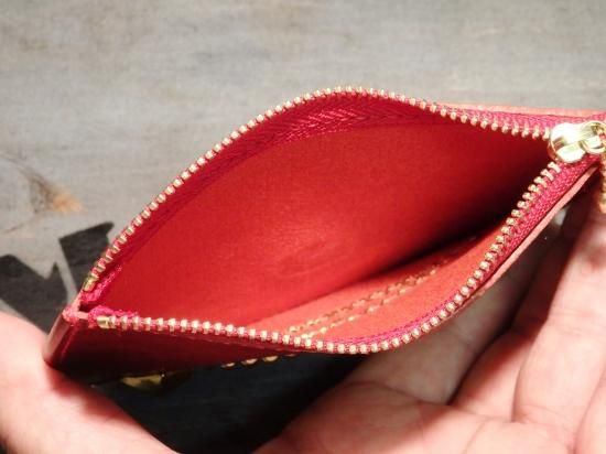 お客様よりコインケースは、メインの革、ステッチ、ジップのテープ色を赤で統一。