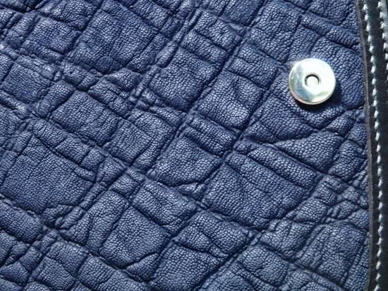 仕事で使用するとの事で、極力シンプルな造りで、ゾウ革のデニムカラーの貴重さと色合いだけではなく、