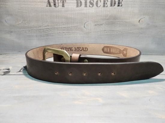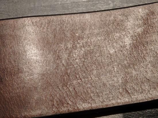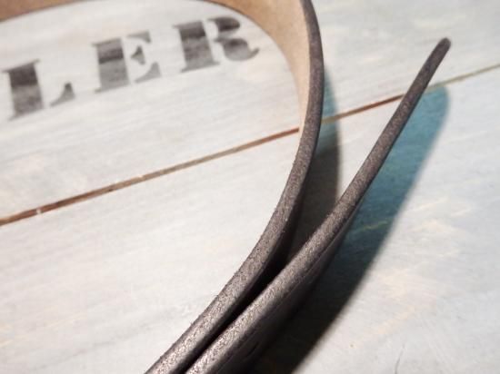 革は、クロムエクセルレザーを使用し、装飾無しでプレーンベルトのシンプルさで、生前からある革のシワ等の革の良さが出ており、さらに使い込む程にさらに深い味わいへと変化して行くベルトに完成しました。