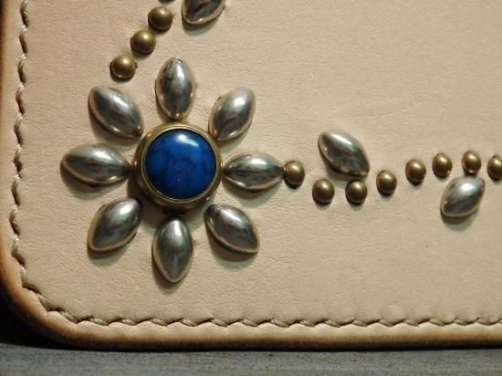 サドルレザーを使用し、スタッズを打ち込んだフラワーモチーフが美しく、シンプルなデザインが引き立ち、