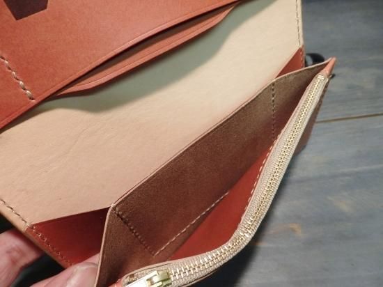 内側は、オイルサドルレザーを使用し、必要な機能性を備え、札の選別、レシート、領収証等の仕分けが出来る様にしてあります。