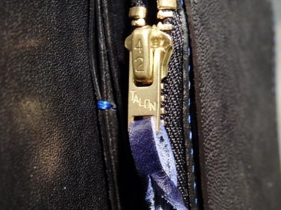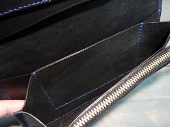 内側は、トラッカーウォレットと同じ仕様にし、ライセンスカード入れの部分だけにルガトーレザーを使用。そのフロント部分には色違いのゾウ革をセット。オーダーならではの今までにない構造の組み合わせで綺麗で高級なウォレットに完成しました。