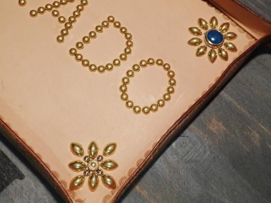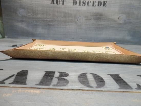 KAIKADOをスタッズを打ち、会計時に使用するアイテムですがインテリアにもなるトレイに完成しました。
