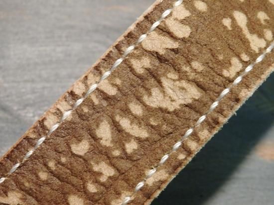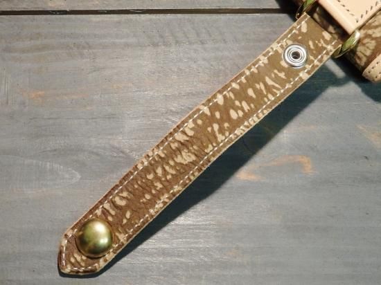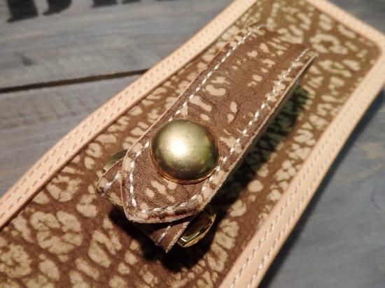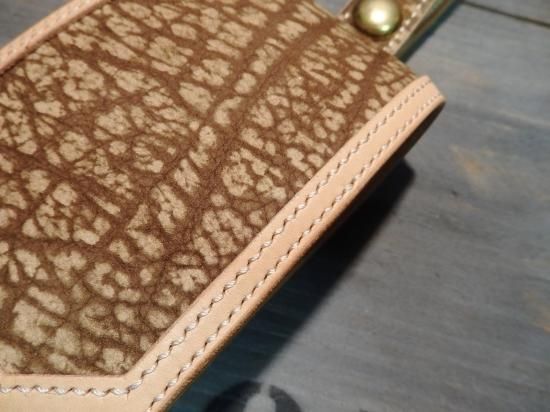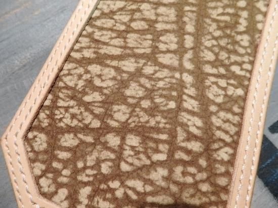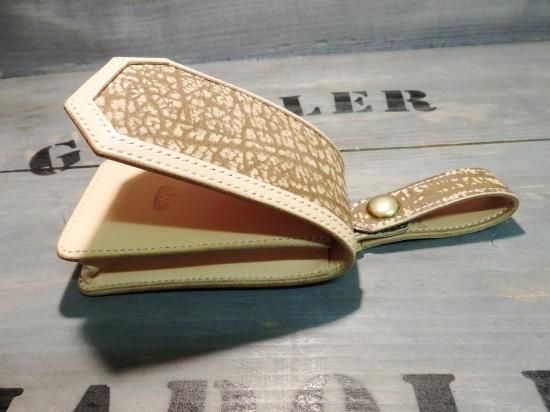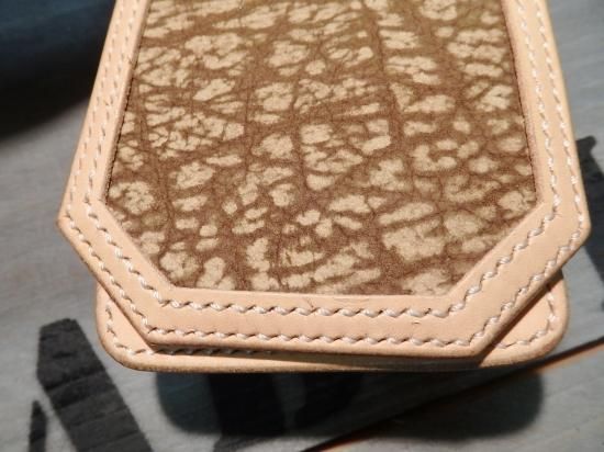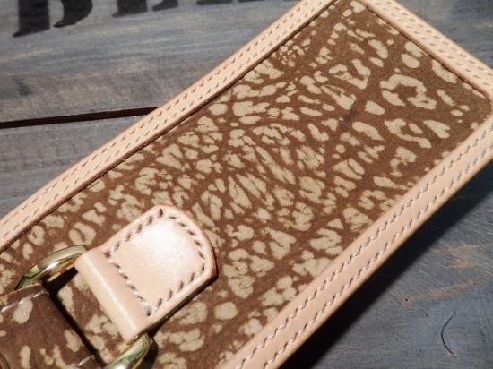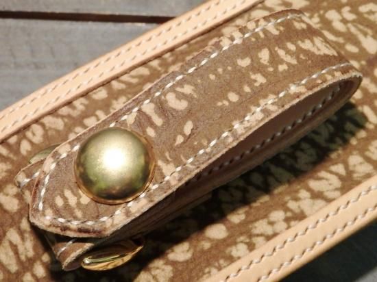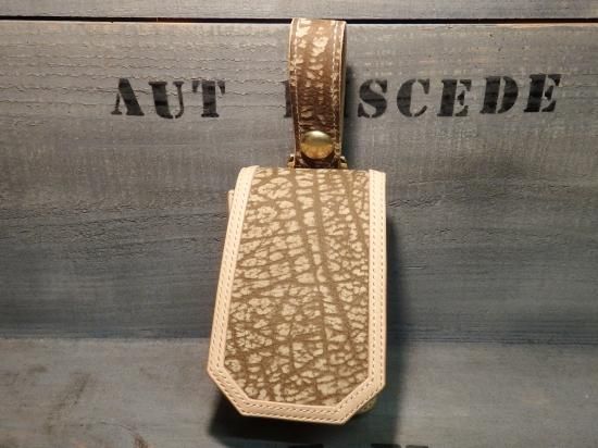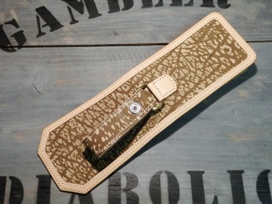 まだら模様が目を引き、他の革には無い模様のアンテロープを使用し、ベルトからぶら下げて使用したいと事でベルトループもセットし、携帯灰皿を入れ、吸殻を入れる為蓋の裏側にポケットをセット。使い勝手も良く、素材全ての良さが現れ、