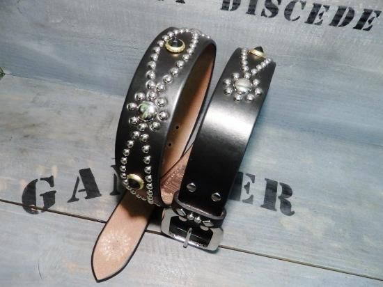 UKサドルレザーを使用し、ベルトのベースはBR-B40-010のスタッズをセット。