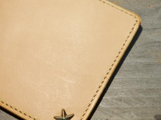 JUNKHEADの焼印を入れ、通帳が綺麗に収まるサイズで、