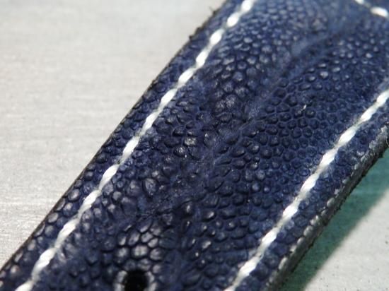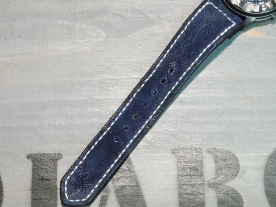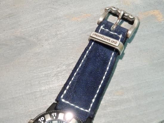 普段、使用していたバンドが伸びてしまった為、エレファントレザーを使用して製作して欲しい。との事。ワシントン条約で輸入制限をされている貴重な革のエレファント。贅沢な革を最大限に使う拘りも素晴らしく世界で1つだけの綺麗な時計バンドに完成しました。