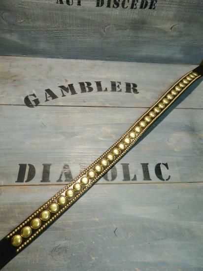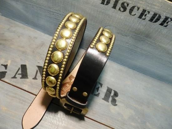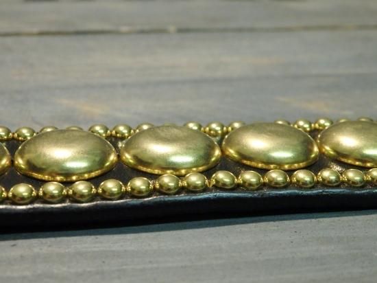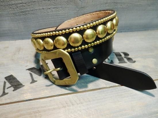 サドルレザーを使用し、ヴィンテージにあるスタッズの打ち方を施したスタッズベルトです。