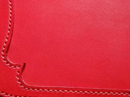 革は、赤のサドルレザーを使用。、本当に綺麗な革ですが、使い込む程に光沢に変化して行く楽しさがあります。