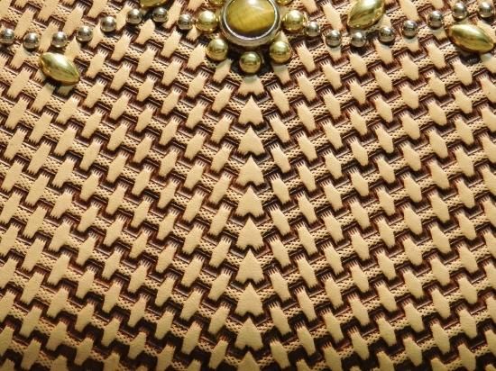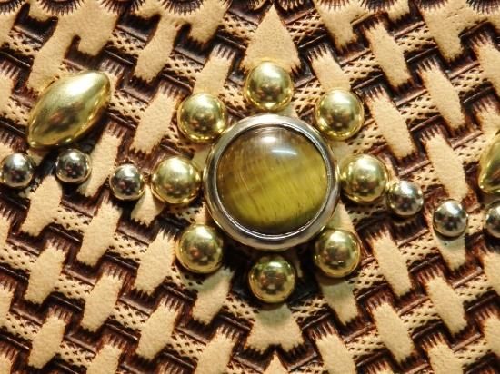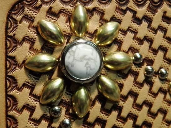 バスケットスタンプを施し、フラワースタッズをセット。さらに天然石をセット。