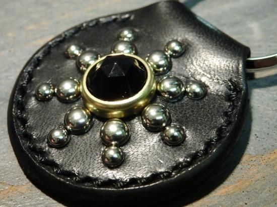 お客様より、以前ご購入頂いた中央の黒色のスタッズはそのまま、周りのスタッズの配置が、✳︎(アスタリスク)の形で、小さな丸いスタッズが8個を減らし、ステッチも黒と細かく分かり易いご注文で革とスタッズが使い込む程変わって行くキーホルダーに完成しました。
