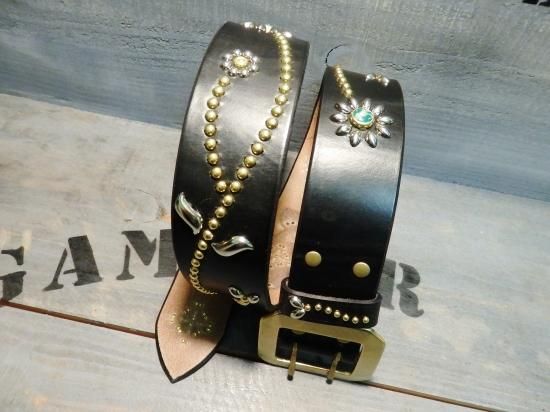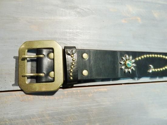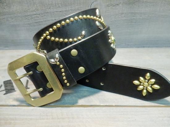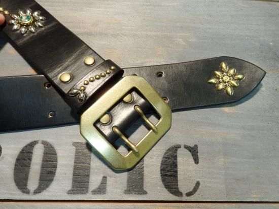 ■商品名:UKサドルレザー/フラワースタッズベルト/オーダー品