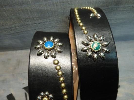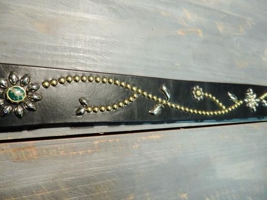 UKサドルレザーを使用しましたフラワースタッズベルトのオーダーを頂きました。
