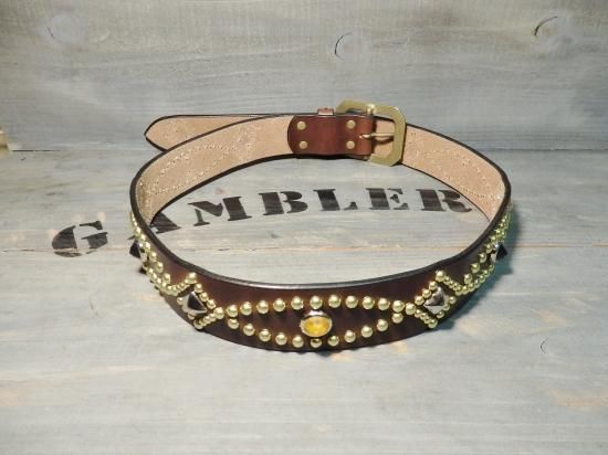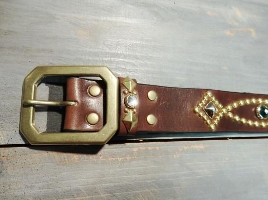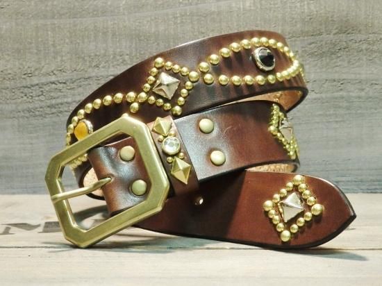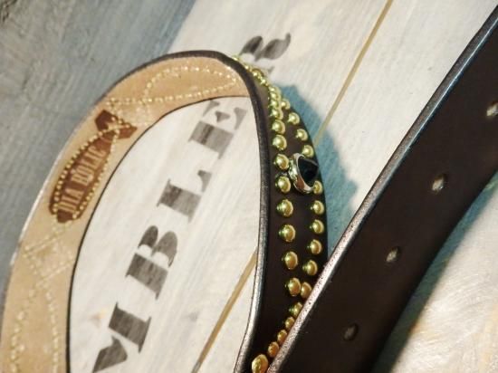 ■商品名:スタッズベルト/サドルレザー・BROWN/オーダー品