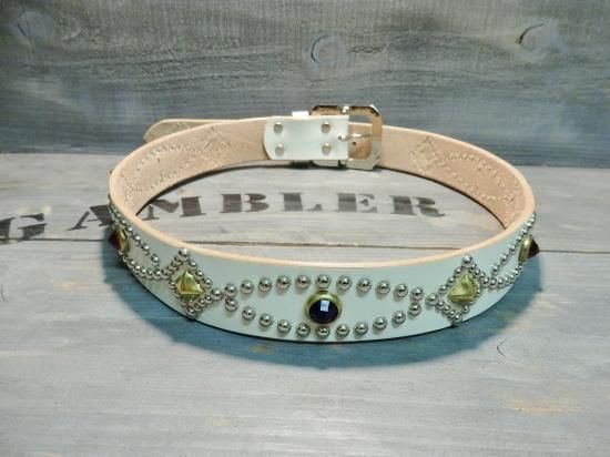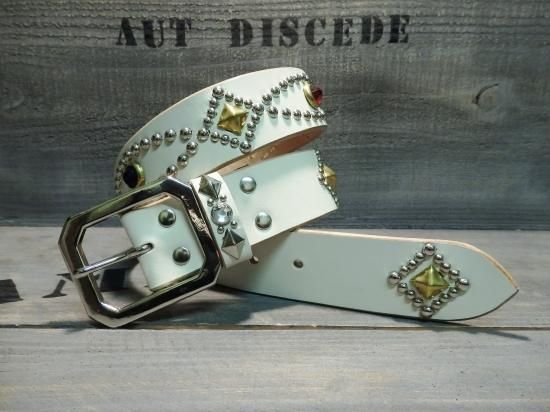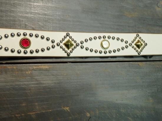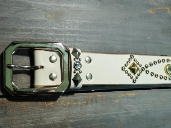 ■商品名:スタッズベルト/サドルレザー・WHITE/オーダー品