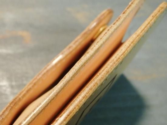 革はサドルレザーを使用し、バースランドのロゴマークのみ焼印で入れスタッズ等無しで、シンプルですが、使い込む程に飴色に変わる変化を楽しめるカードケースに完成しました。