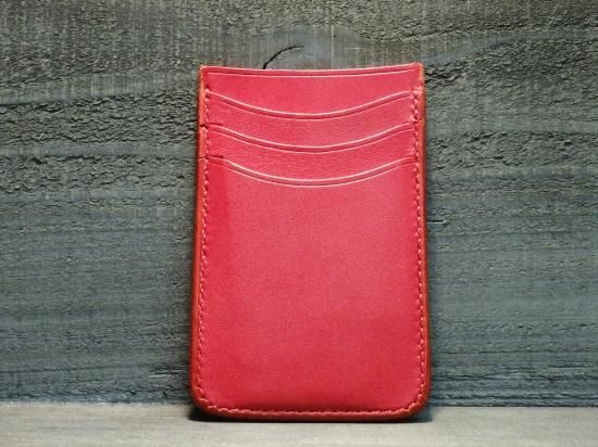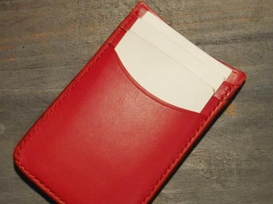 お客様よりカードケースは、革、ステッチを赤で統一。