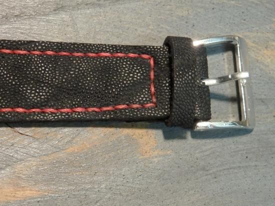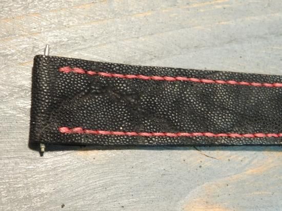 普段、使用していたアンティークの時計バンドが伸びてしまった為、エレファントレザーを使用して製作して欲しい。との事。ワシントン条約で輸入制限をされている貴重な革のエレファント。贅沢な革を最大限に使う拘りも素晴らしく世界で1つだけの綺麗な時計バンドに完成しました。